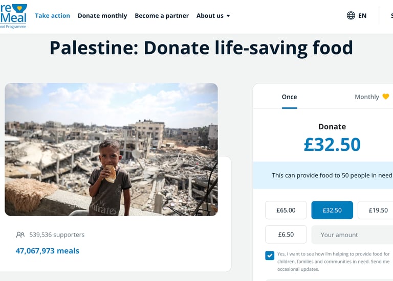 Both charities are on the ground in Gaza right now. Share a Meal have specific allocation of funds for Gaza.