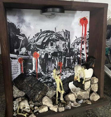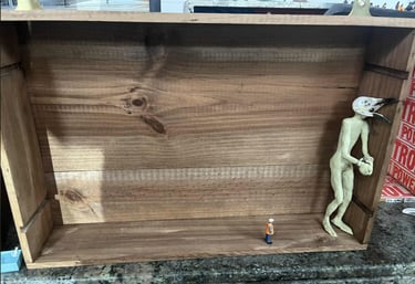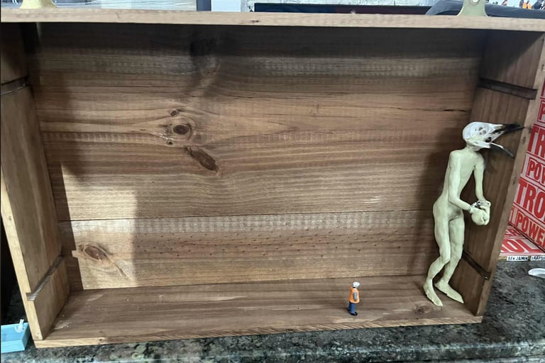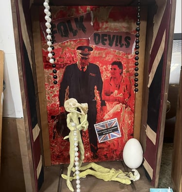Giles Walker. Full time member of the Mutoid Waste Group. Kinetic artist and collage in 3D and 2D. Exhibited internationally. Mixed media sculpture boxes. Usual price £450.