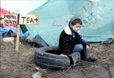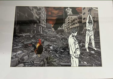 “Past and Present" Syrian Refugee in Lesvos, Greece. Print on A2 heavy acid free textured art paper. Signed