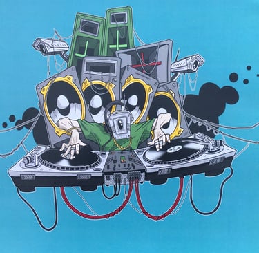 DotMaster- Stencil street artist and exhibitions throughout the Uk, Paris, New York, Tokyo and Dubai. Produced work for Nuart Festival in Norway, Glastonbury and Banksy’s Can Festival.