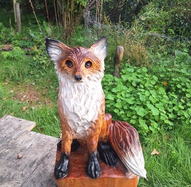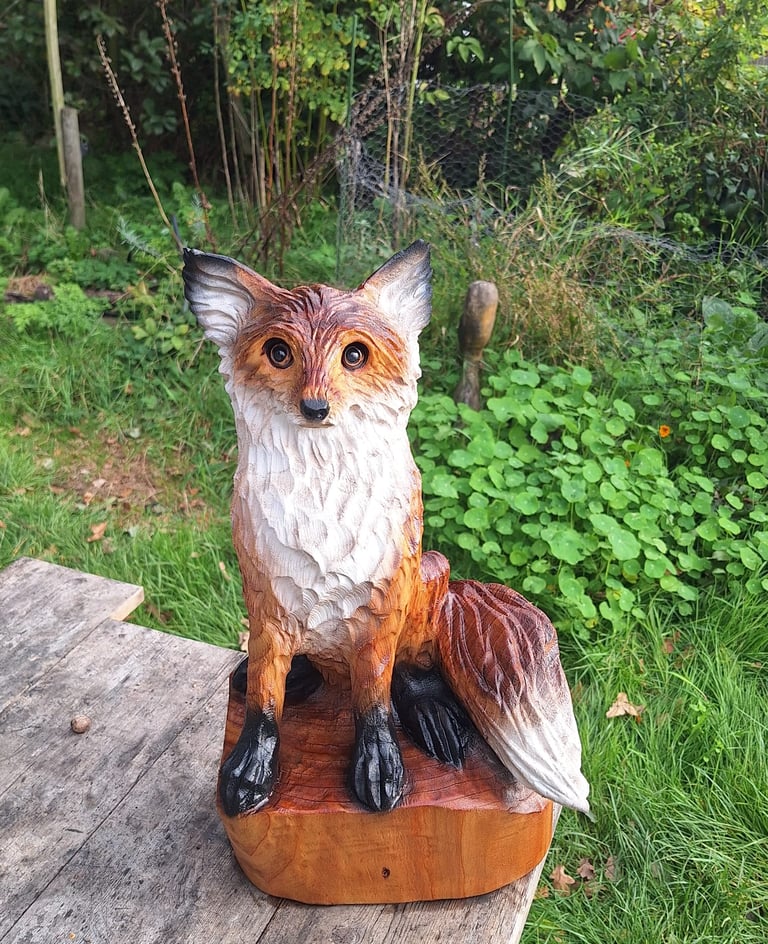 Fox carving, western red cedar wood. 50 x 20 x 30 cm. Guide price £150, starting bid £50