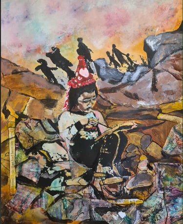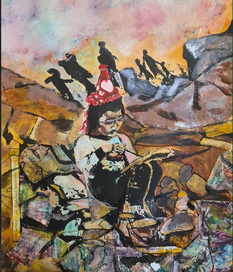 Laura Hyland- Contemporary mixed media artist, exploring the human condition and highlighting refugee stories. Originally from London, now based in Buxton.Mixed media prints, various sizes.