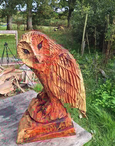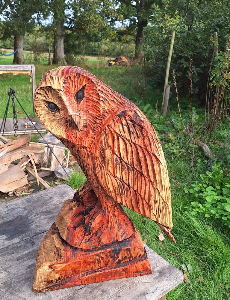 Ginger Rob - Wood carving of a barn owl, made with sequoia wood. H 67 W 50 D 30 cm. Guide price £150, starting bid £50