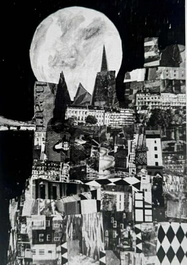 Giles Walker, A3 mixed media collage. Usual price £300, starting bid £100.