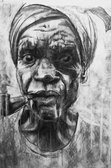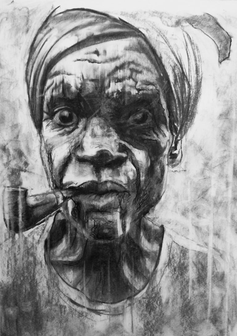 “Batwa with a pipe” Pygmy tribeswomen IDP. Uganda. Print on A2 heavy acid free textured art paper. Signed