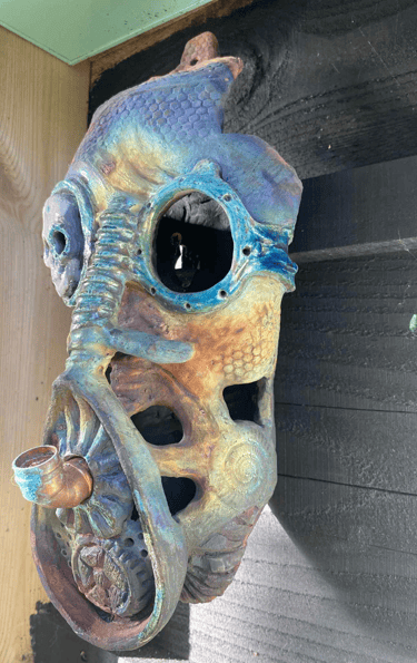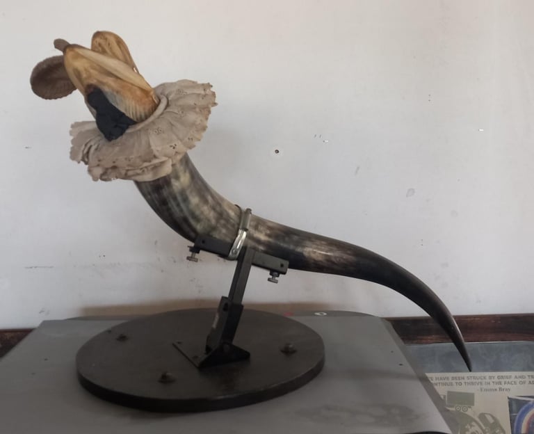 Meg Medley- Sculpture and founder of On The Brink Arts CIC. Sculptures from scrap metal and also produces casts of skulls, horns and natural forms in resin, often creating these sculptures into beautiful lights.