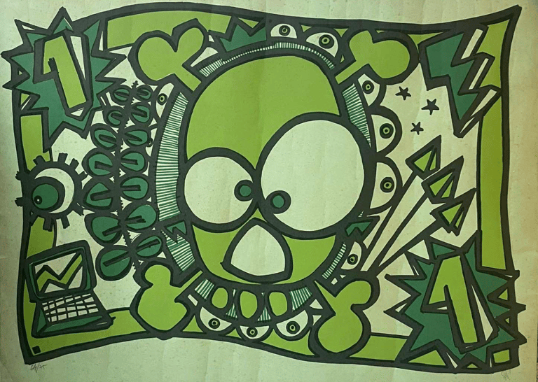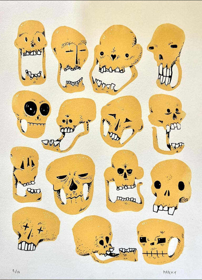 PARKY- John Parkinson. Illustrator, printmaker and street artist from Brighton. A4 on heavy art paper.