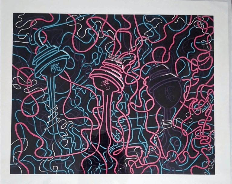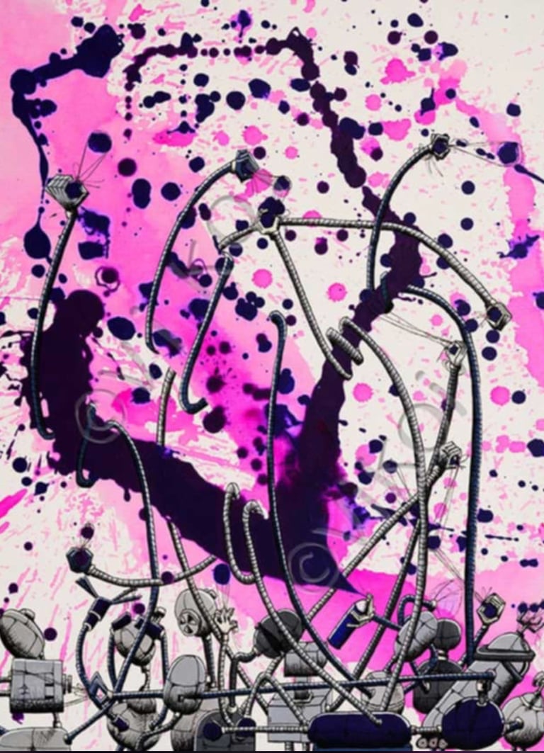 Pink Spaghetti” A3 Glicee print on high quality Somerset Velvet 255gsm fine art paper.