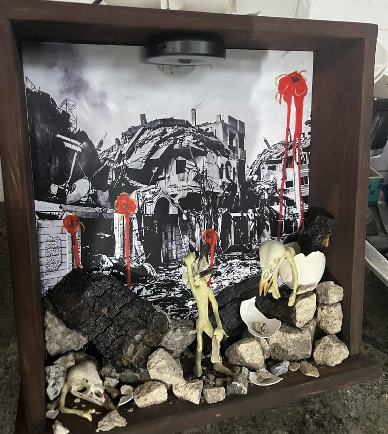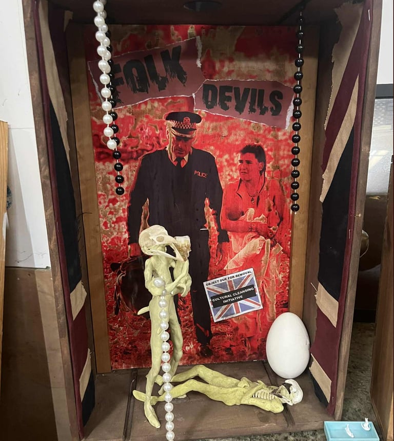 Mixed media sculpture, "Cultural Cleansing Initiative", 55 x 35 x 15 cm. Starting bid £200.